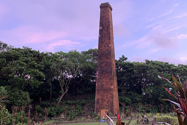 4ヵ年ほど操業した後に戦争により米軍の攻撃により破壊されましたが、3基あった煙突のうち1基と貯水槽1基が残存しています。